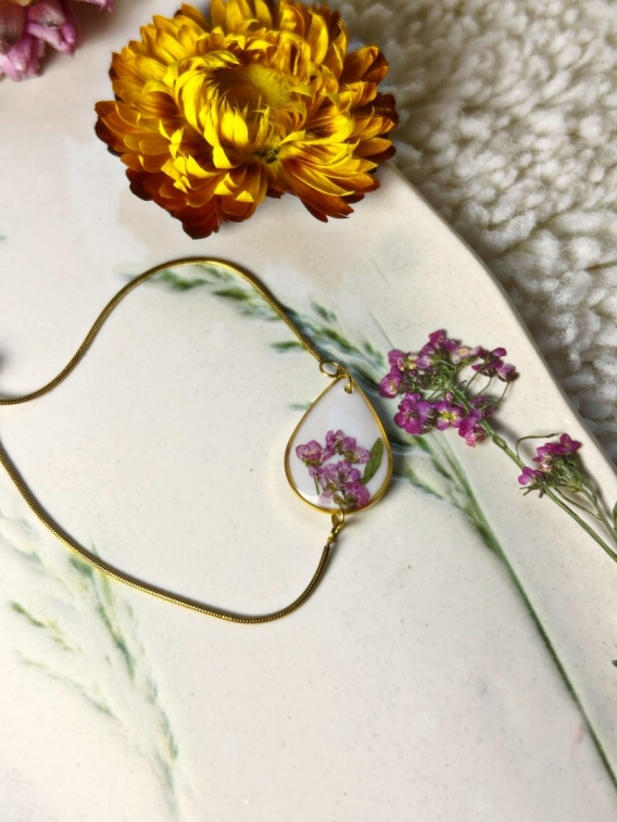 Delikatna bransoletka z prawdziwym kwiatem smagliczki w złotej oprawie